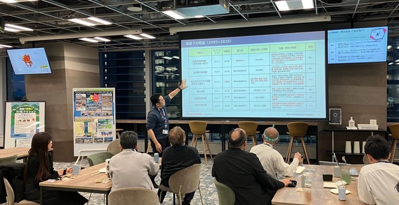 また、PID虎ノ門では、SGM同日に、ふくしまマルシェや、防災担当者を対象にした「東日本大震災を振り返る会」を実施しました。振り返る会では、マルシェで購入したものを囲みながら、SGMの視聴を行うなど、福島の復興や今後の防災を考える機会にもなりました。