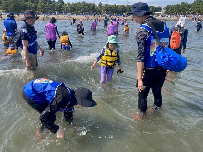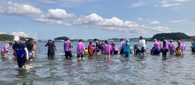 6月1日(日)、横浜・海の公園にて、金沢八景―東京湾アマモ場再生会議が主催のイベントが開催されました。総勢76名、うちパナソニックから5名が参加し、アマモ451株の苗植えを行いました。