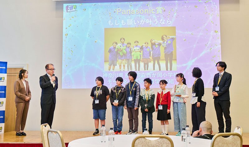 At the awards ceremony, the winners of the three categories (elementary, junior high, and high school) and the "Panasonic Award" chosen by 465 Panasonic Group employees were announced.