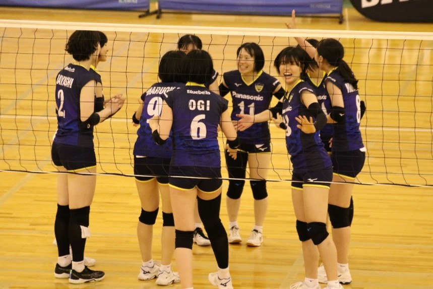 2セット目も序盤から新人の喜田選手(エナジー社)、林選手の両サイドアタッカーのスパイクで得点を重ねてリードを奪います。途中出場の東郷選手のスパイクも炸裂しリードを広げ2セット目を連取し、ストレートで勝利しました。
