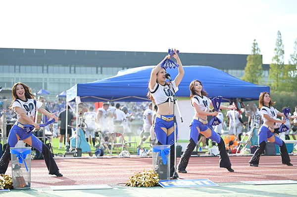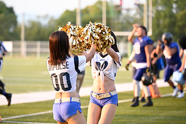 残暑が厳しい中行われた試合。そのような中でも、たくさんのインパルスファミリーの皆様が会場に足を運んでくださり選手入場から、会場は大きな熱気に包まれました。ロングパスが通りタッチダウンを獲得、数々のQBサックが炸裂され、スタンド・選手・チアリーダー一体となって盛り上がるシーンが特に多くありました。早くもレギュラーシーズン折り返し。ここから後半戦に向けて、日本一の応援を作り上げるべく、これからもこだわり続けます。