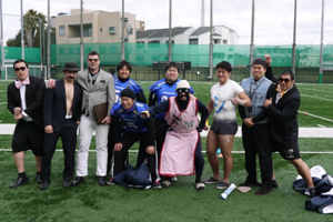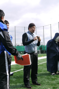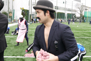 棒を支えているカンナムスタイルの谷口選手と淺野選手は、