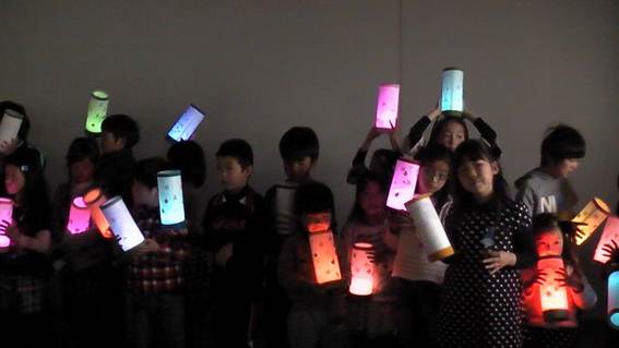最後は作ったLEDを暗いところで点灯し、集合写真を撮りました。