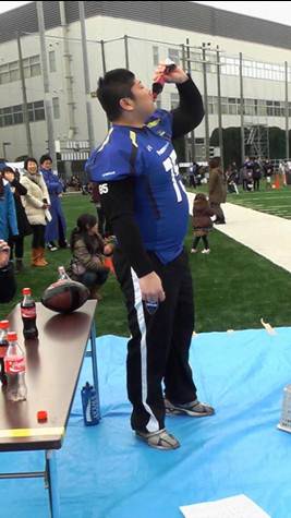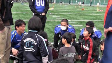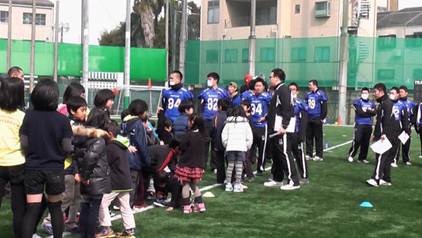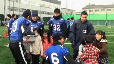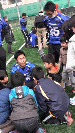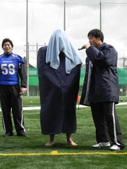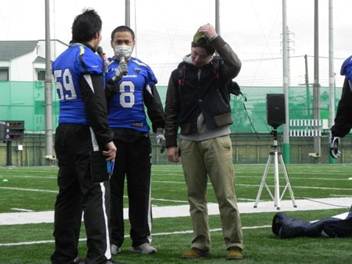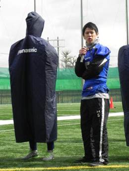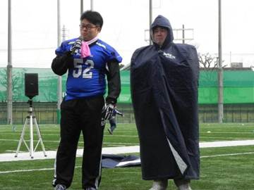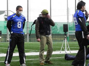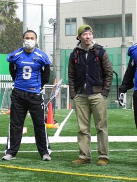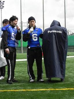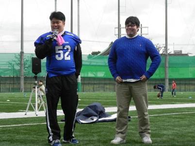 2012年度シーズンを持って引退された元WR塚崎さん(右の私服の人)が、
