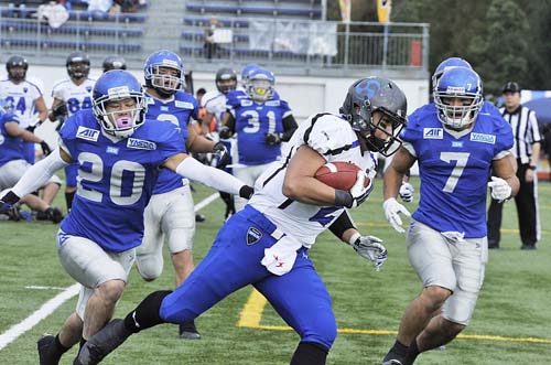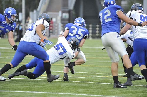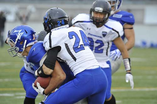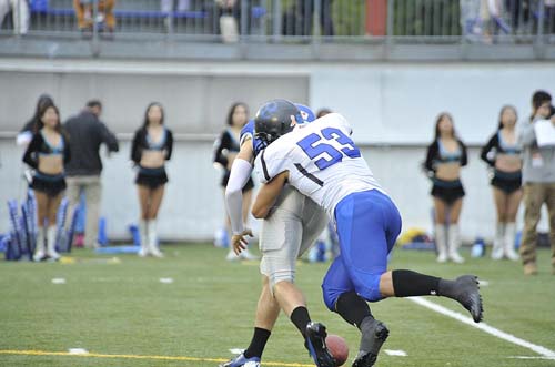 ビッグブルーは試合終了間際に最後の反撃をし、QBケビン自らのタッチダウンランで7点を返すが、時すでに遅し。55対24で、インパルスが快勝した。