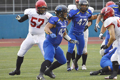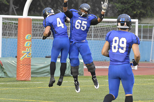 しかし、その直後のTFPでディレイ オブ ザ ゲームの反則をおかすと、続くキックカバーでは相手に右オープンを走られ、78YDのビッグリターンを許してしまう。このピンチを救ったのは試合を通じてLOSを支配し続けた強力なDL陣。最初のプレイではDL#42飾磨が相手QBを見事にサックし、13YDをロス。続くランプレイでもDL#43脇坂が4YDロスにしとめ、このシリーズを51YDのフィールドゴール失敗で終わらせる。