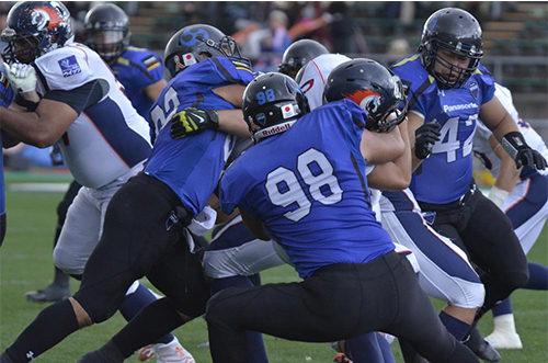 だが、さらなる前進はインパルス守備陣が阻止し、ライズはフィールドゴール狙いに。このキックをインパルス守備陣の激しいラッシュで潰し、得点を許さない。