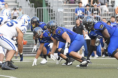 第1Q。最初の攻撃シリーズでは前進できなかったインパルスだが、次のチャレンジャーズの攻撃を守備陣が抑えてパントに追い込む。