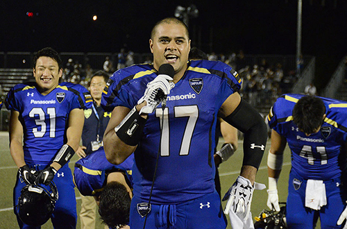 この試合で大活躍のK#11佐伯(栄)が、5度目のフィールドゴールを見事に決めて、22対0。