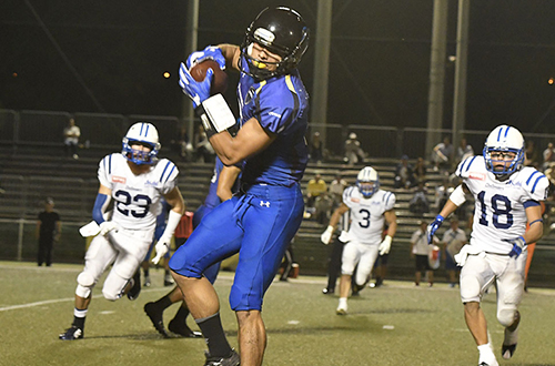 すると、ここでビッグプレーが飛び出した。相手パントをキャッチしたR#1ポーリーが、味方のブロックに助けられながら、スピードに乗って激走!