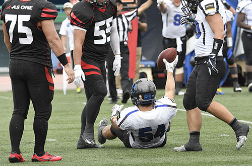 これをブラックイーグルスがリカバーし、残り42YD地点からの攻撃権を得る。
