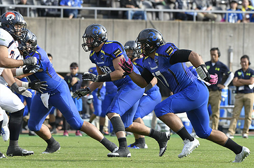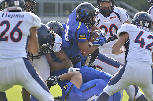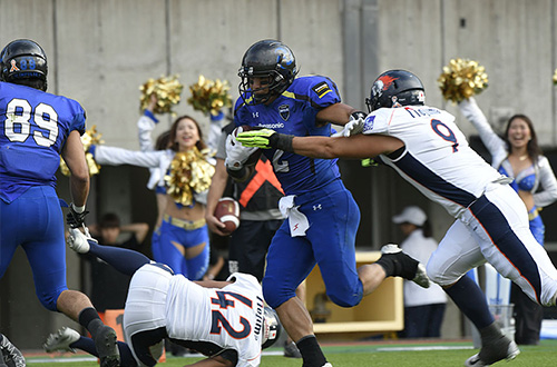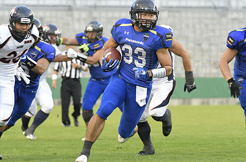 TFPでは2ポイントコンバージョンを選択し、RB#33横田のランで見事に成功。14対17と一気に差をつめてみせた。