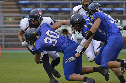 ライズの最後の攻撃も、DB#24竹内がパスをインターセプトして阻止。試合はこのまま終わり、インパルスが勝利した。
