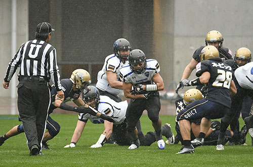 先攻となったインパルスは、RB#33横田の連続ランで残り14YD地点へ。