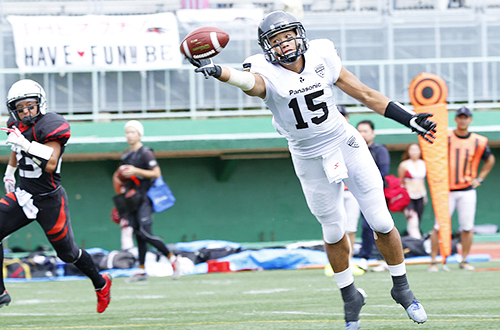 ここからWR#80柴田へのパスを通し、柴田がエンドゾーンまで走ってタッチダウン。14対0。