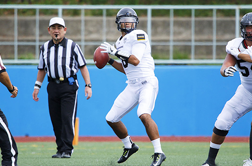 ブラックイーグルスの最後の攻撃も、DB#1ポーリーがパスをインターセプトして阻止。
