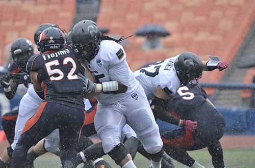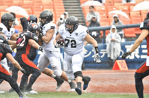 前節に続いて、雨が降りしきる中での試合となった最終節。強力オフェンスを擁するライズとの戦いは、最後の1プレーまで目が離せない、まさに手に汗握る大接戦となった。