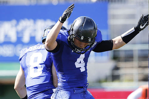 守備ではDB#7土井が相手パスをインターセプトするなど得点をゆるさず、前半はこのまま終了した。