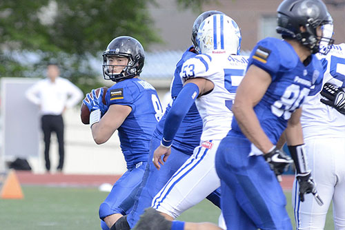 一矢報いたいチャレンジャーズは、自陣39YD地点からパス攻撃を中心に前進。
