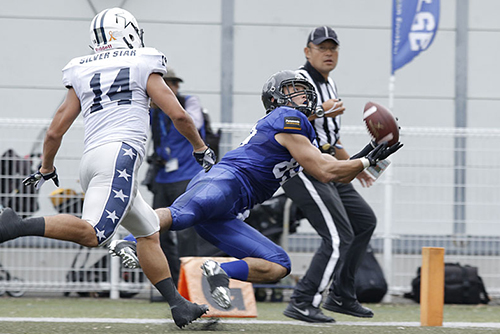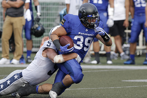 守備も相手の全獲得ヤードを146YDに押さえこみ、52対7でシルバースターに勝利した。