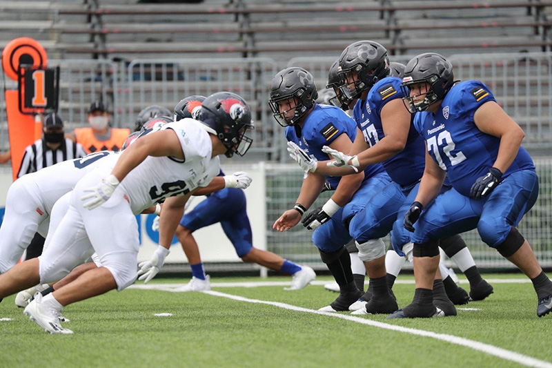 拮抗した展開を打開したのは守備だった。第2Q早々にLB#39Jaboree Williamsがボールキャリアの懐からボールを奪い取ってそのままエンドゾーンまで走りきって先制TDを挙げた。