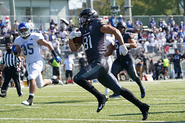 RB#5 ミッチェル・ビクター・ジャモ―のロングゲインで敵陣34ヤードに侵攻。