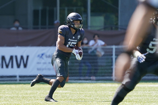 セーフティー後のキックオフリターンでは新人WR#15 桑田理介が51ヤードのビッグリターンで敵陣13ヤードまで戻し、QBLawrenceからWR#2 Leonsha Fieldsへの5ヤードTDパスでたたみかけた。