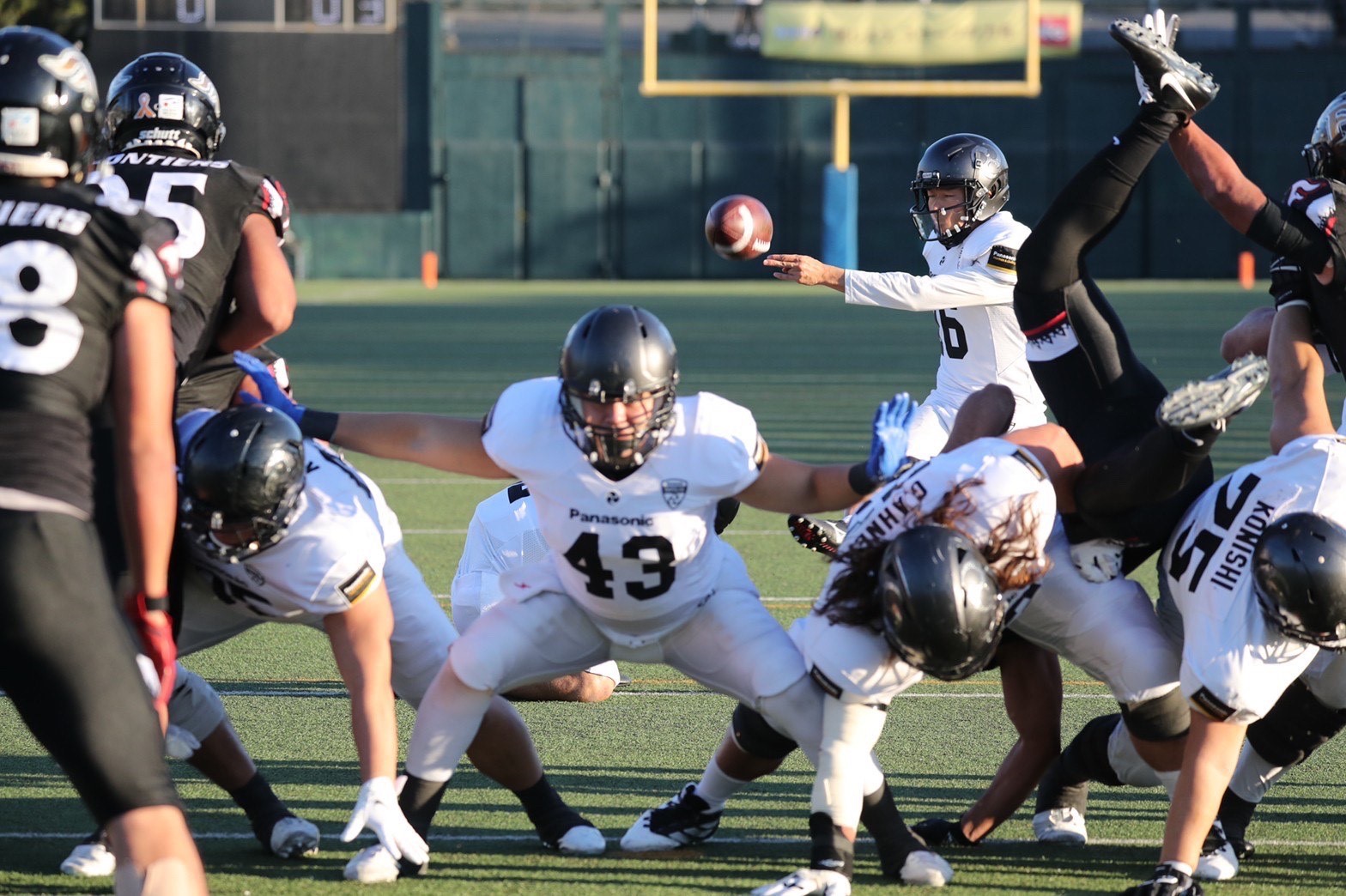 後半最初の30ヤードのFG以外の4つをきっちりとK/P佐伯(眞)が決めてくれたのが大きかったです。第3Qに自陣深くから相手陣20ヤードまで戻したパントは見事でした。