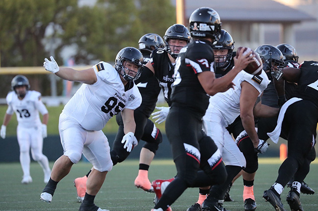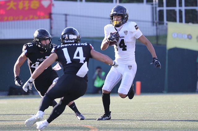 第4Q終盤、富士通に2TDを返され、1ポゼッション差に迫られたが、残り38秒で富士通が試みたオンサイドキックをWRブレナンが確保して勝負を決めた。