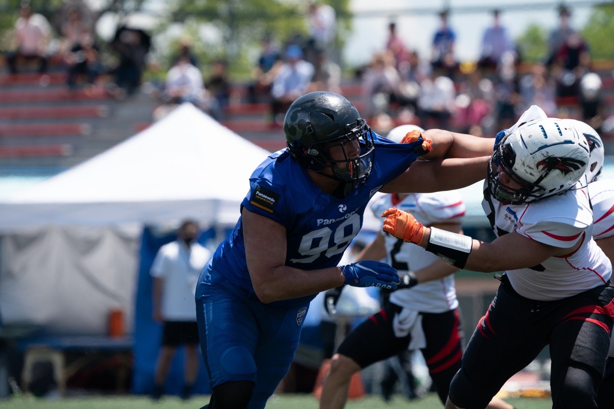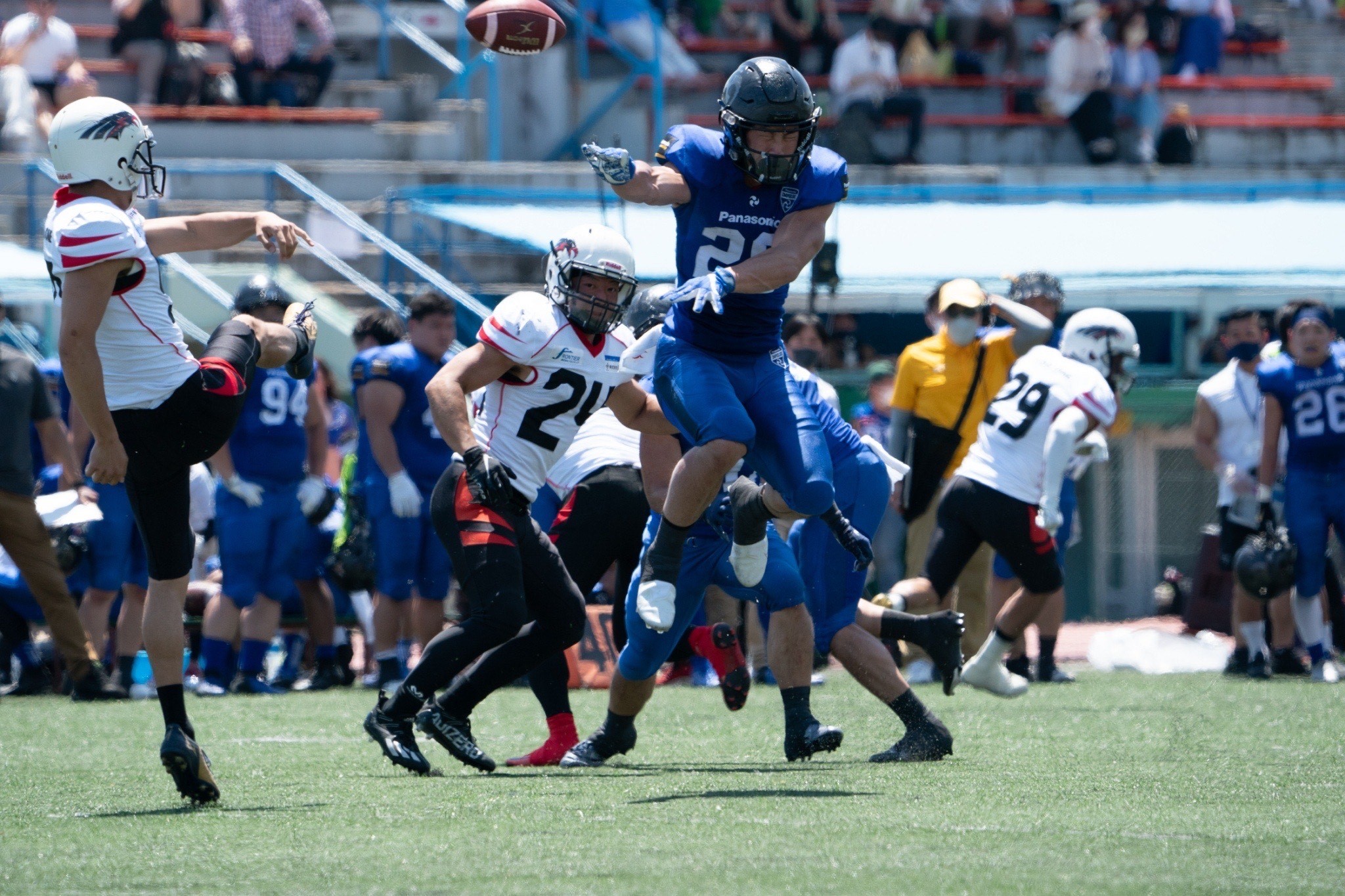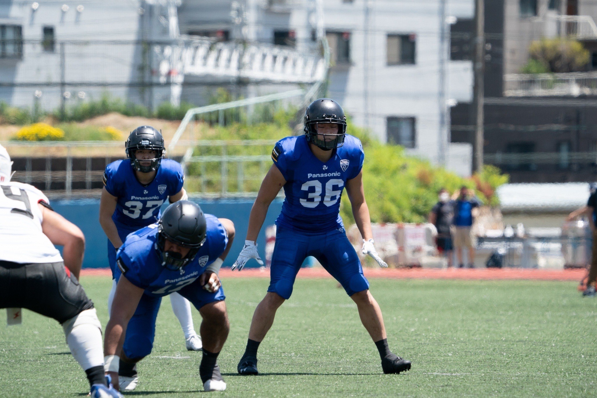 試合が進むにつれて、体力的にも優位に立ったインパルスは、立川の33ヤード独走TD、QB荒木からWR木戸への46ヤードロングパスTDなど、ビッグプレーを連発。また、2年目の#37DB魚谷海仁が平均19.3ヤード(4回77ヤード)と高アベレージのパントリターンを記録して実力をアピール。守備でも2年目の#94DL濱口裕哉、5年目の#36DB平山栄輝ら、昨年まであまり出場機会がなかったメンバーも溌剌としたプレーで存在をアピールした。