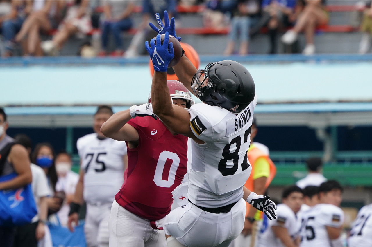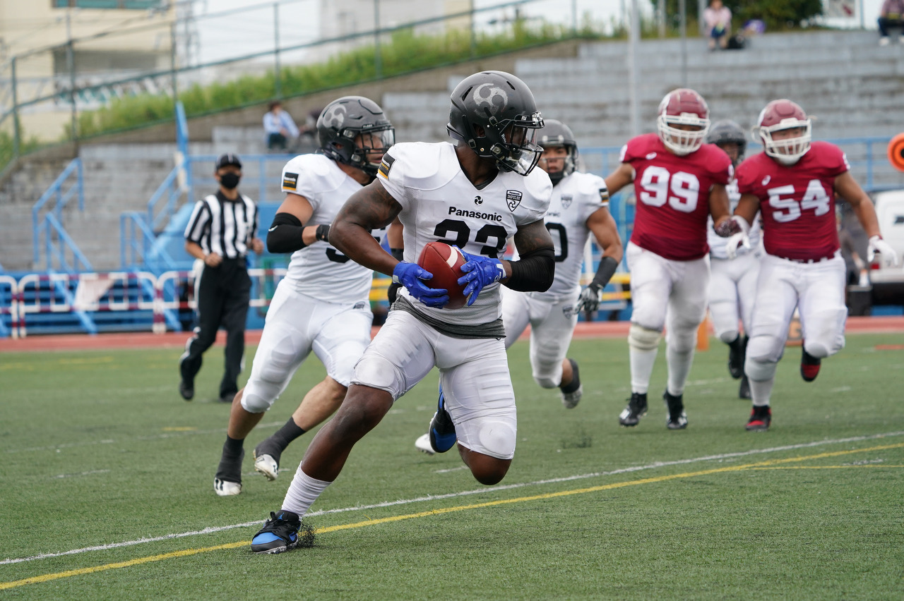 敵陣45ヤード地点で迎えた第4ダウン1ヤードのギャンブルもミッチェルの中央のランで突破。さらに、新加入のWR#96Alfonso Onunworと、TE#87西紋弘次へのパスでゴール前1ヤードに迫り、節をまたいでRB立川のTDランにつなげた。