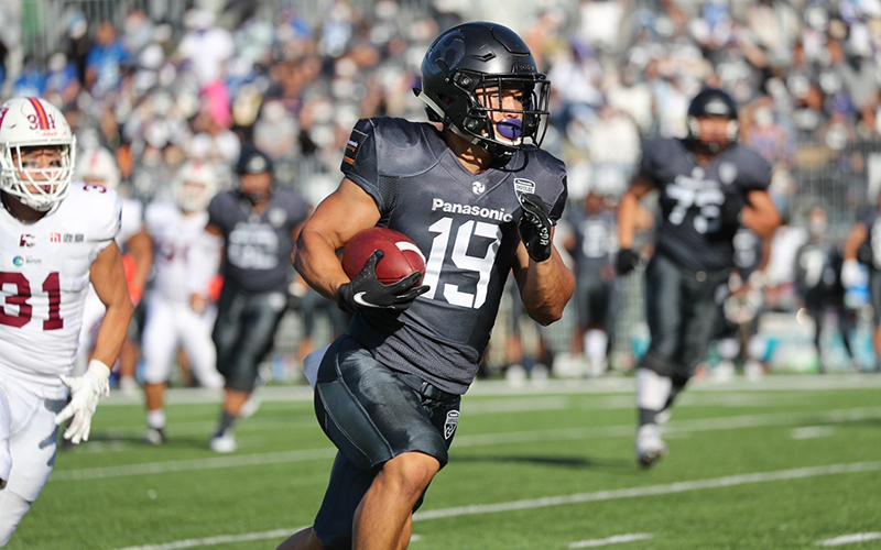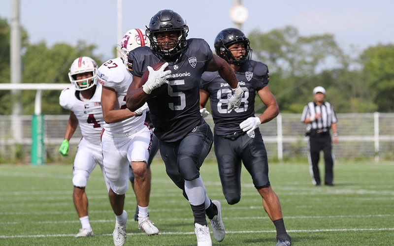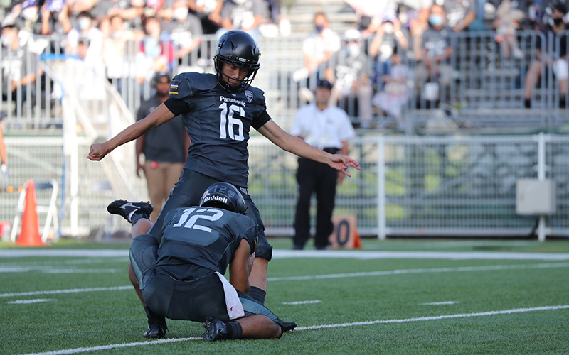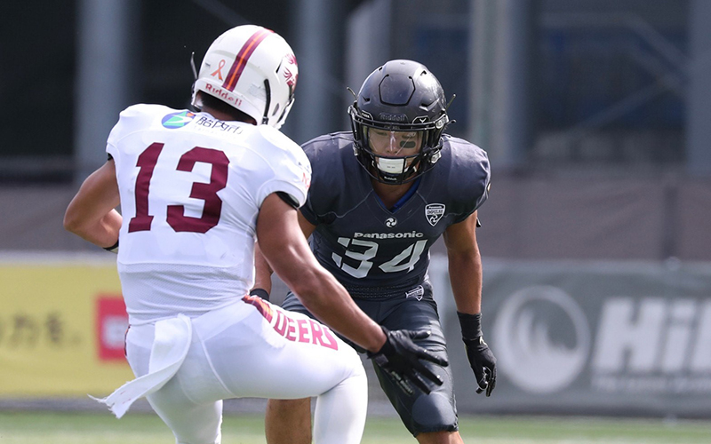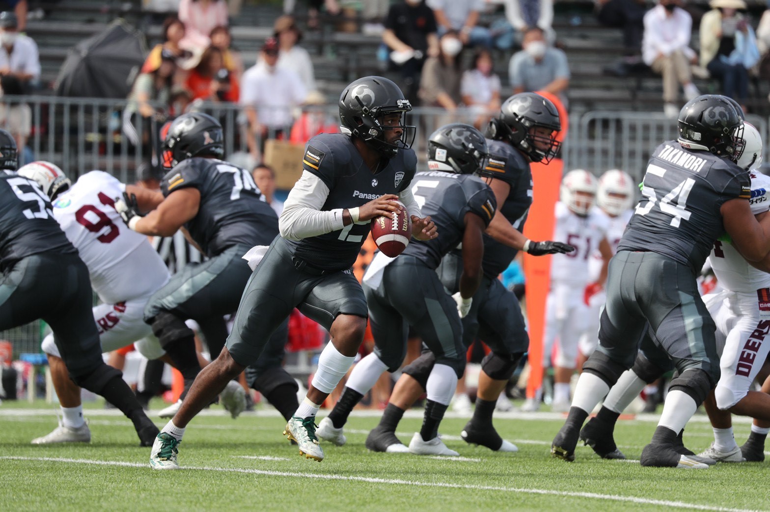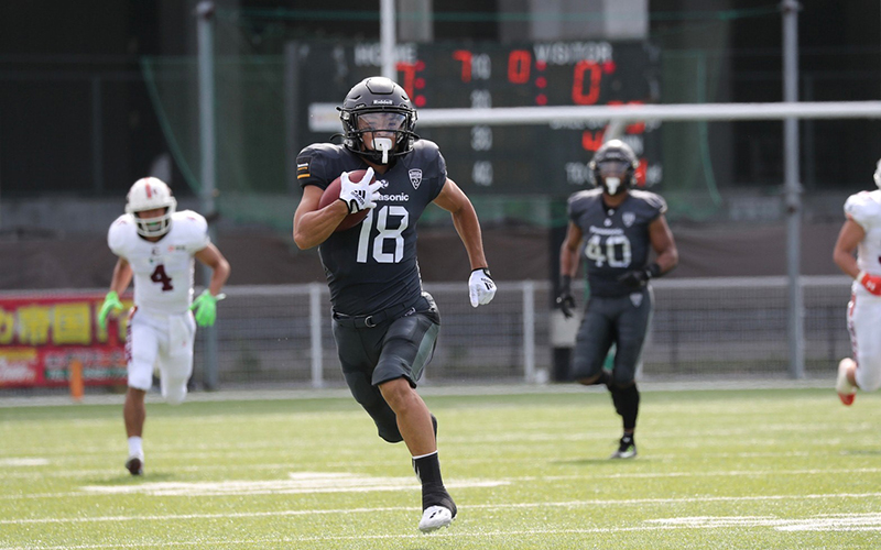再びチャンスを作ったのはスペシャルチームだった。第2Q最初のディアーズのパントをWR桑田が大きくリターンし、敵陣33ヤードまで戻すと、このシリーズの2プレー目にRBミッチェルが27ヤードTDランを決めて加点した。