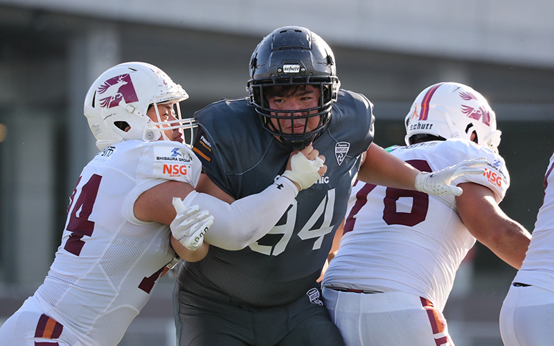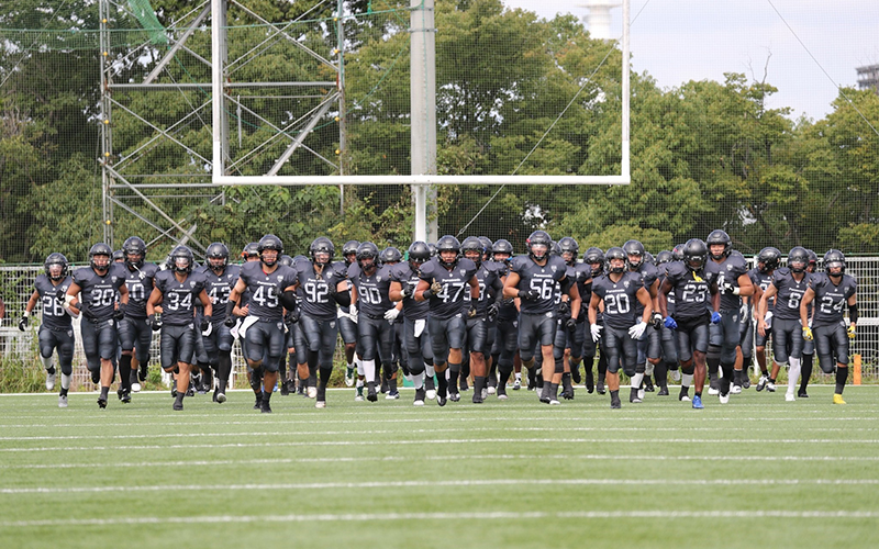 第4QにはQB#8石内卓也を起用。WR桑田、#14ブレナン翼へのパスを足がかりに前進し、K#16佐伯眞太郎の26ヤードFGを演出すると、試合終了間際にはRB#29牧田圭祐の好走で1TDを追加した。