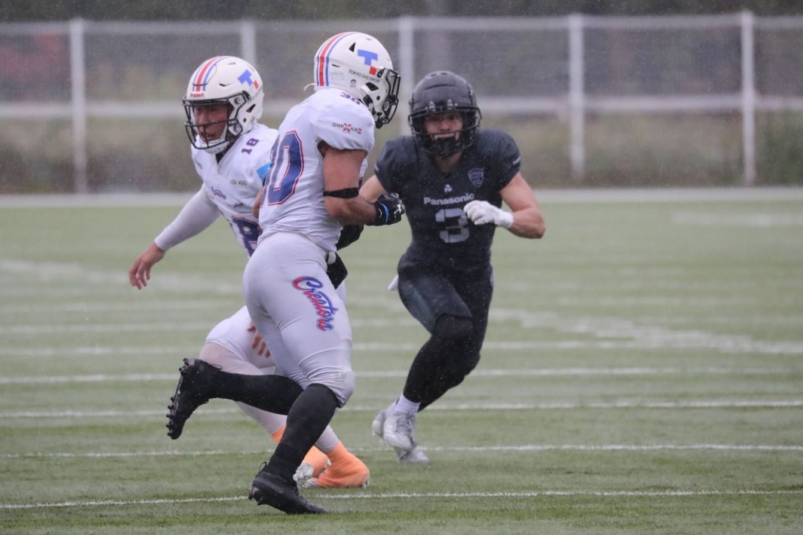 第4Q序盤では、三番手で登場した新人QB#8須田啓太に反則によるアクシデントが発生するも、このシリーズではRB#26藤本拓弥のTDランで追加点をあげた。