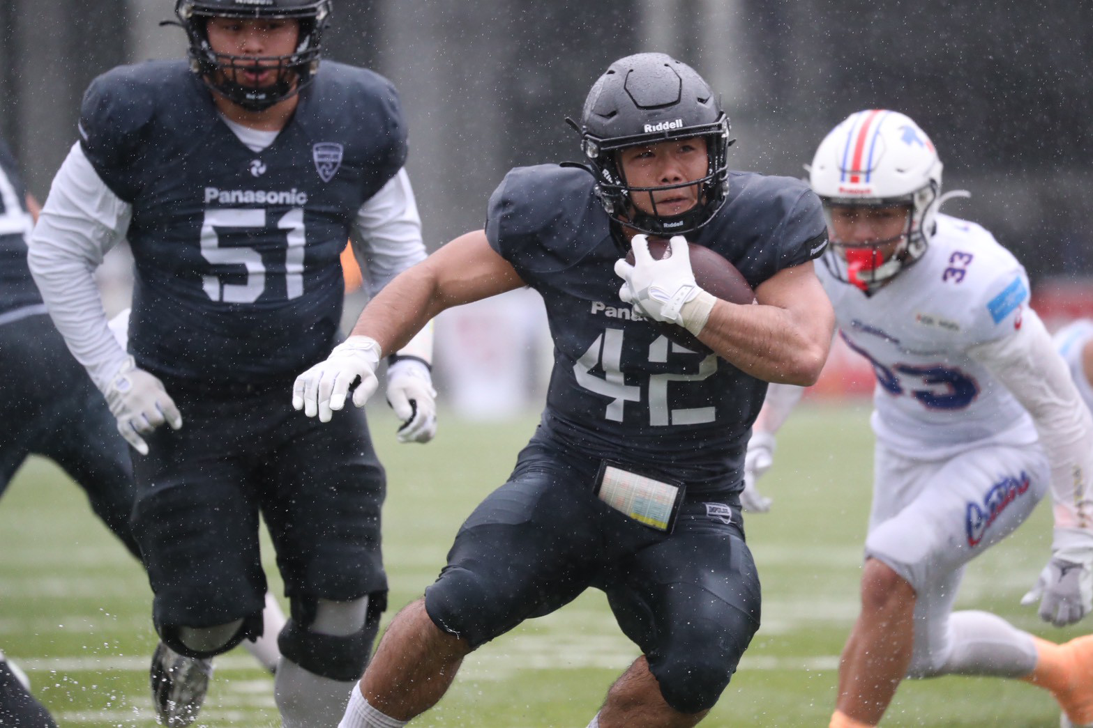 その後もボールハンドリングが安定しない状況が続いたが、WR山下が再びチャンスを作った。パントリターナーに入った山下は、22ヤードの好リターンで敵陣39ヤードからの攻撃機会を創出。このチャンスをRBミッチェルがラン2連発でTDにつなげてリードを広げた。