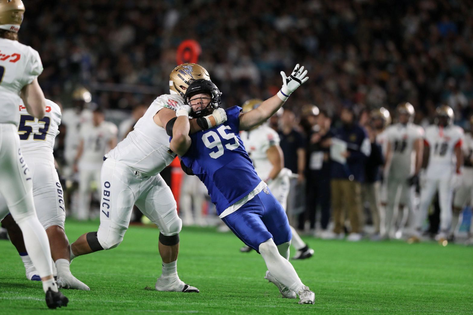 しかし、第2Qはこの歯車が狂い始める。佐伯が2度のFG機会を失敗。第2Q中盤にはオービックにロングパスTDを決められて、3対7と逆転を許してしまう。