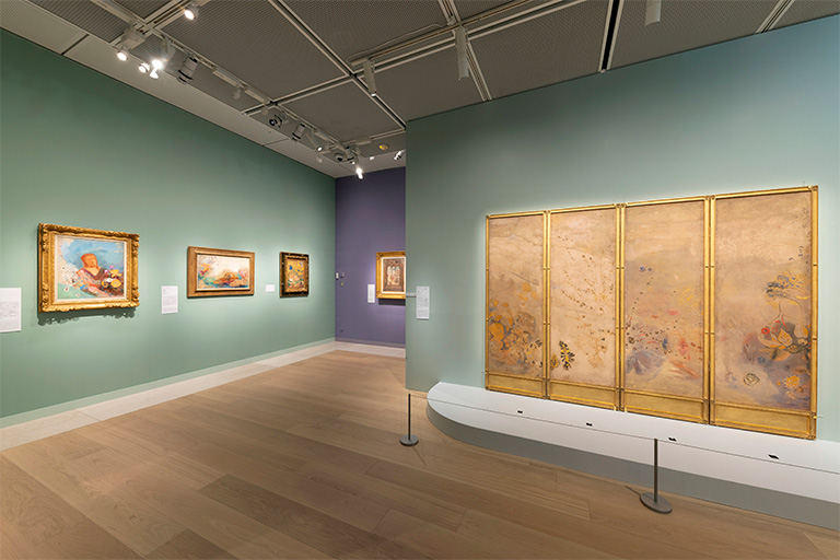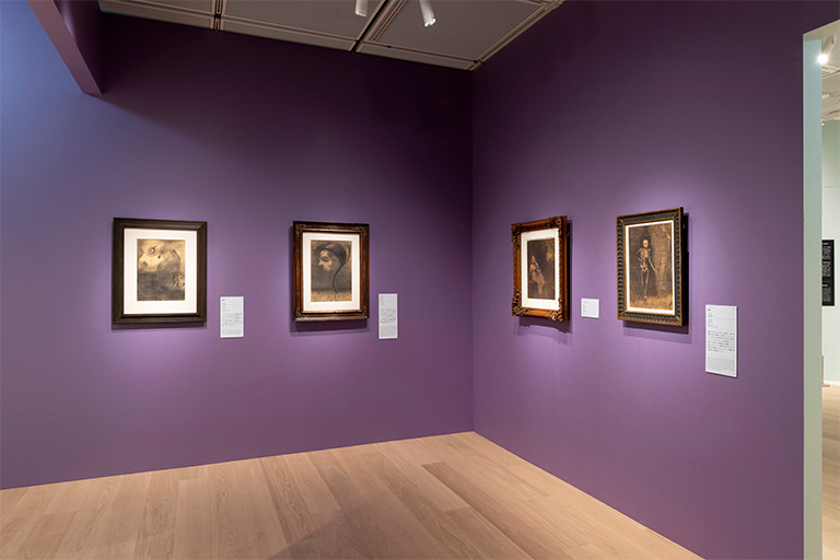 19 世紀後半から20 世紀初頭にかけて活躍したフランスの画家オディロン・ルドン(Odilon Redon、1840-1916)。本展は、世界有数のルドン・コレクションを誇る岐阜県美術館の全面的な協力のもと、国内の美術館や個人所蔵家、そしてオルセー美術館から出品いただいたパステル画、油彩画、木炭画、版画を展示し、近代美術の巨匠ルドンの豊穣な画業の全容をご覧いただきました。19世紀フランス美術史を専門とする高橋明也氏に監修いただき、岐阜県美術館とひろしま美術館に続いて当館へ巡回した本展。当館では、約110点の作品を通じて、モノクロームによる初期の版画、木炭画から、1890年代以降の色彩豊かなパステル画、油彩画への移り変わりを辿りながら、伝統と革新の狭間で、ルドンが独自の表現を築き上げていく姿を紹介しました。