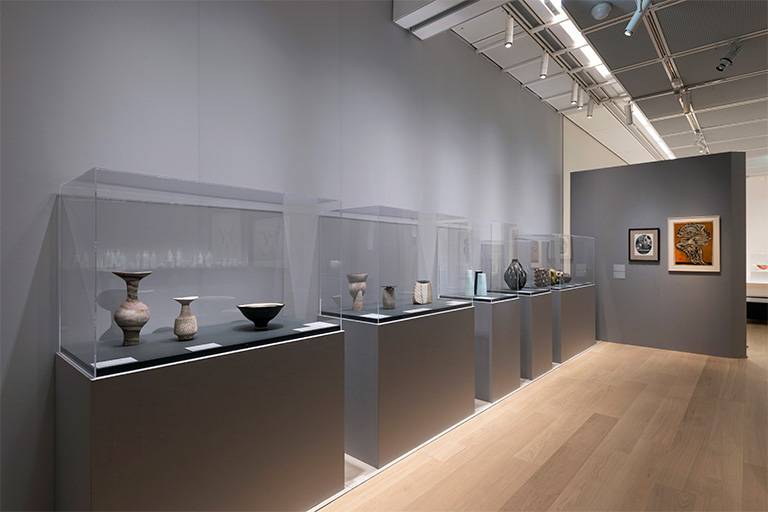 本展の中盤となる第5章では視点を変え、イギリスやデンマークの作家を中心に、陶芸において重要な位置を占めるうつわの表現と、そこに見出される陶芸と絵画をめぐる表現の展開について提起しました。