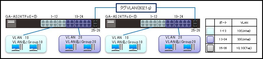 この設定例では、GA-ASシリーズのVLAN設定について説明します。