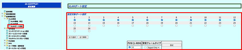 GA-AS24TPoE+②にVLANの設定を行います。(手順3-5と同様)