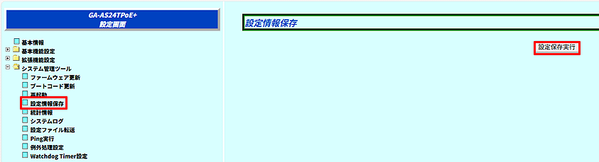 GA-AS24TPoE+②の設定を保存します。(手順6と同様)