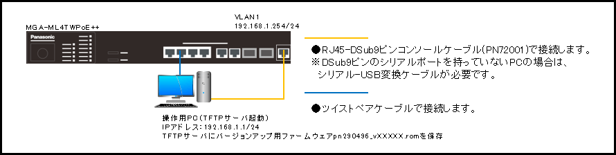 この設定例では、MGAシリーズのTFTPによるファームウェアバージョンアップについて説明します。