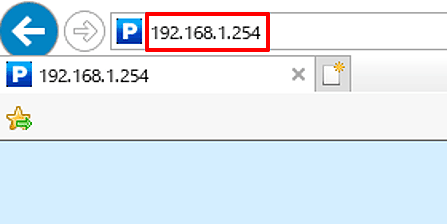 PCにてMicrosoft Edge(Internet Explorerモード)を起動し、アドレスバーに“192.168.1.254”と入力し、Enterキーを押します。