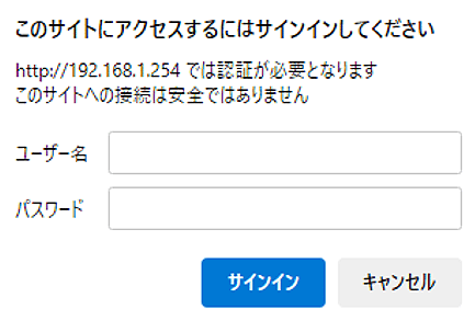 ユーザ名とパスワードを入力して設定画面にログインします。