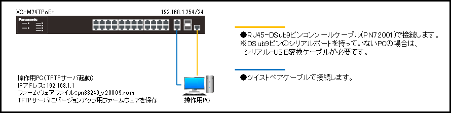この設定例では、MNOシリーズのTFTPによるファームウェアバージョンアップについて説明します。