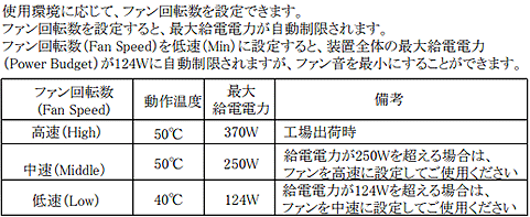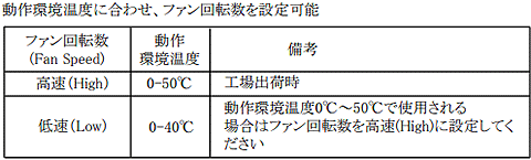 ファン回転数の変更を行います。(下図を参考に回転数を決定してください)