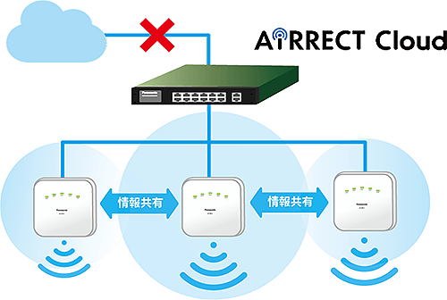 クラウドコントローラーとの通信が途切れた場合でもAIRRECTのWi-Fi通信はそのままご利用いただけます。