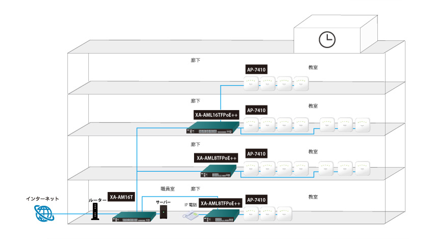 | XA-AML16TFPoE++ | IP address | SNTP | VLAN | telnet | LLDP | PoE Auto reboot(ping) | QoS | ダウンロード | XAシリーズ |
