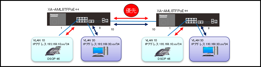 この設定例では、XAシリーズのQoSによる優先制御設定について説明します。