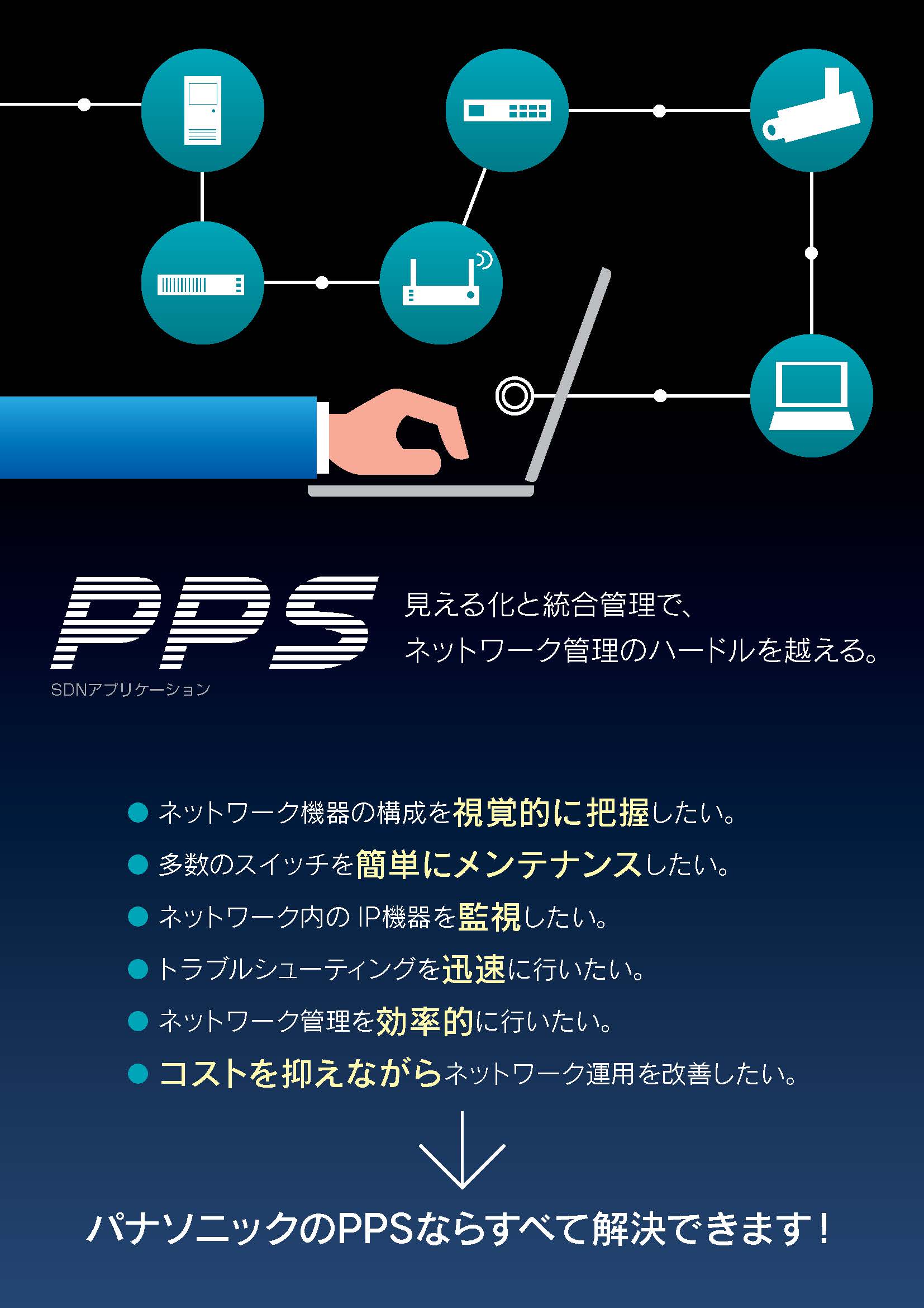 「PPS」は今秋発売予定の、当社スイッチングハブの設定と、ネットワークの可視化と監視を行うソフトウェアで、システム管理者様の業務効率化にお役立ていただけます。